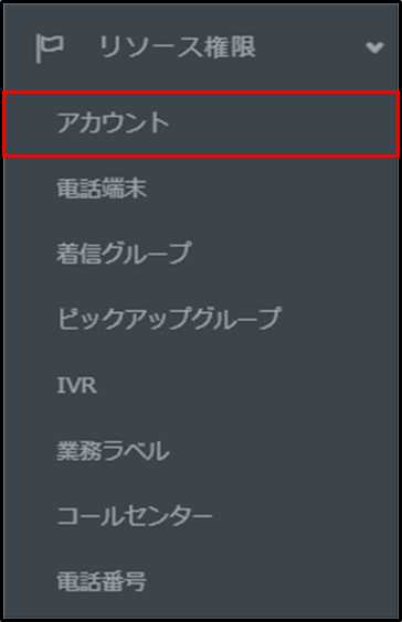 [リソース権限] > [アカウント] をクリックします。
