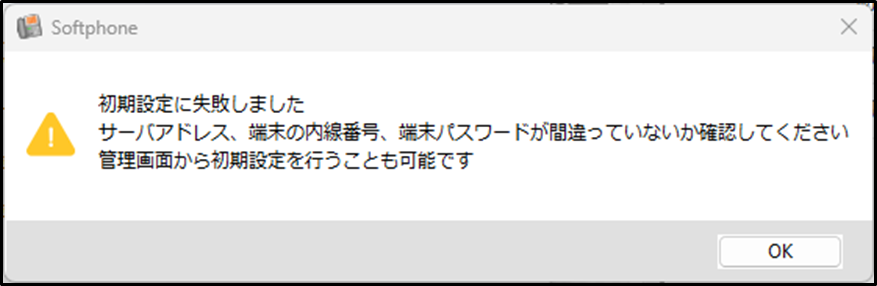 初期設定完了後のソフトフォンのエラーについては、「1.ソフトフォン利用時のエラーメッセージ及び対処法」をご参照ください。