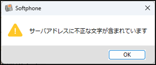 [サーバアドレス] 欄の入力内容に、全角文字やスペースが含まれている場合に表示されます。