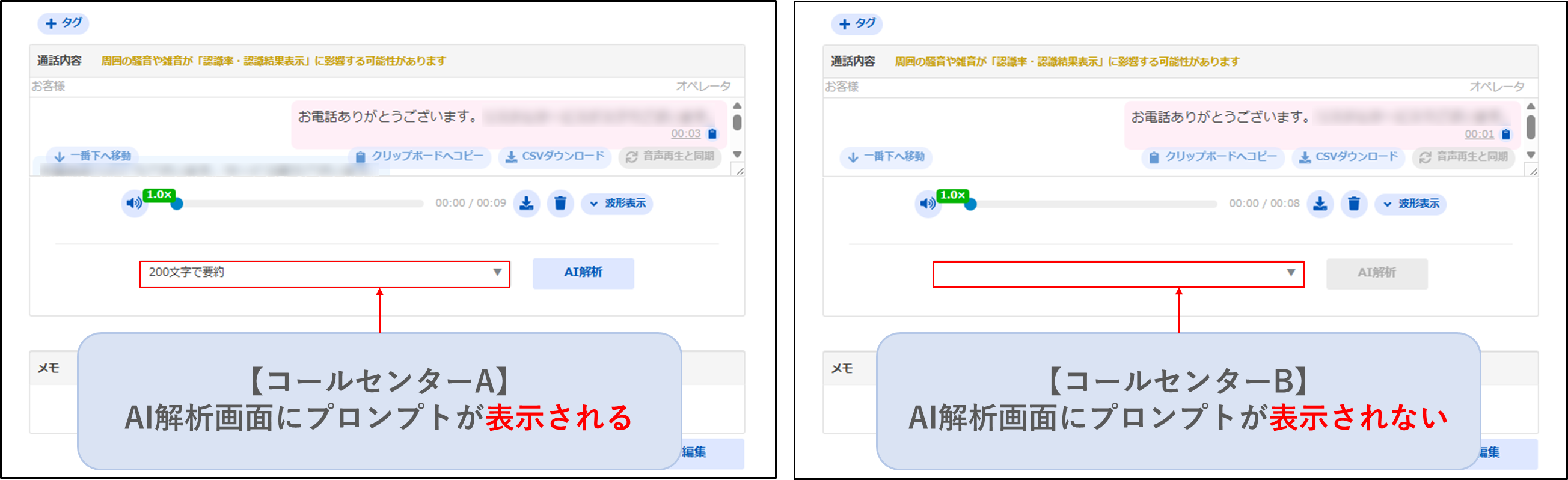 ※音声テキストが存在しない場合、AI解析エリアは表示されません。