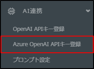 BIZTEL管理画面の「AI連携」>「Azure OpenAI APIキー登録」を設定します。 |