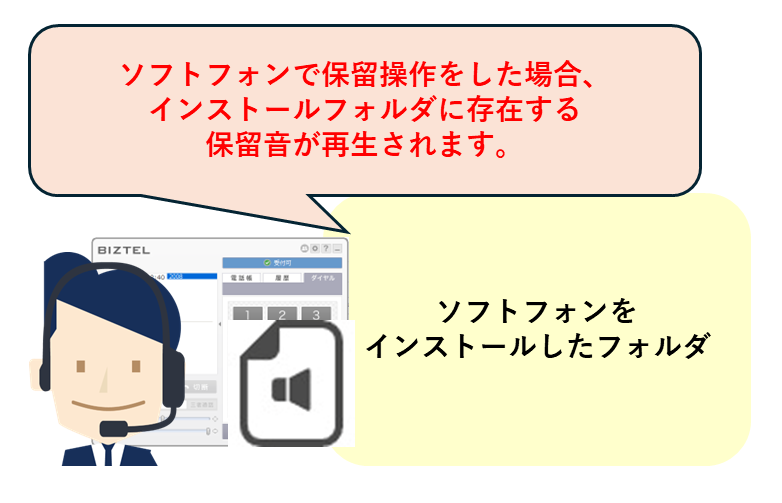 ※ソフトフォン内の保留音の変更は動作保証しておりませんのでご注意ください。