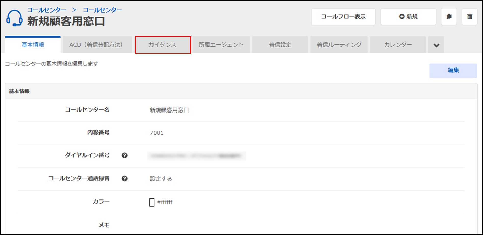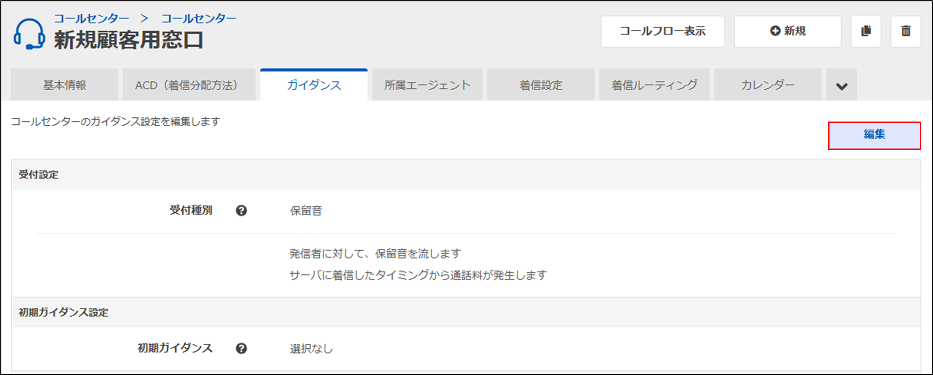 手順2.保留音を変更するコールセンターの「ガイダンス」タブをクリック