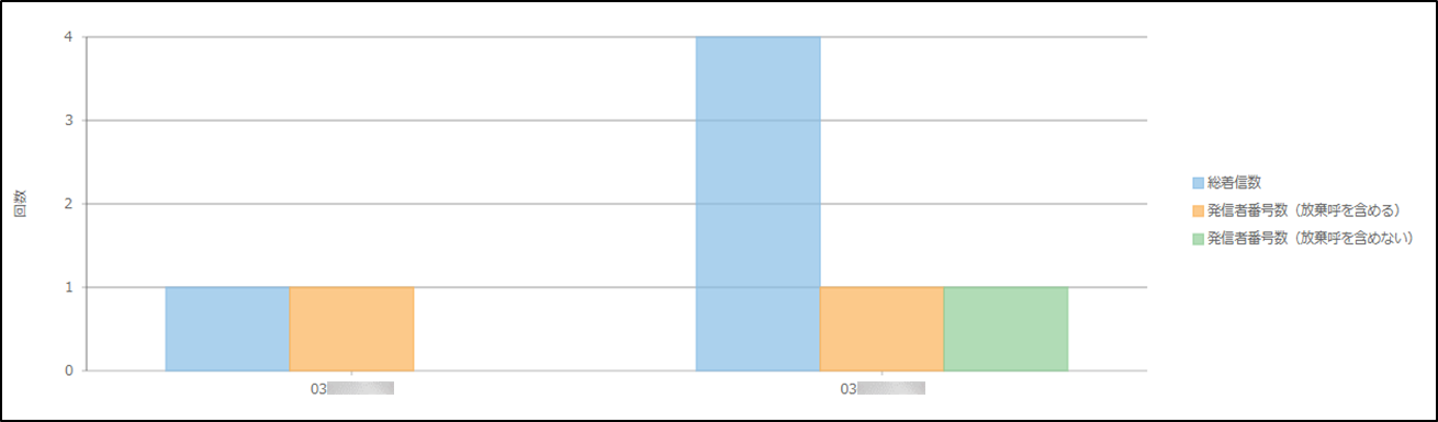 電話番号/電話番号グループごとに、「総着信数」と「発信者番号数」をグラフ表示します。