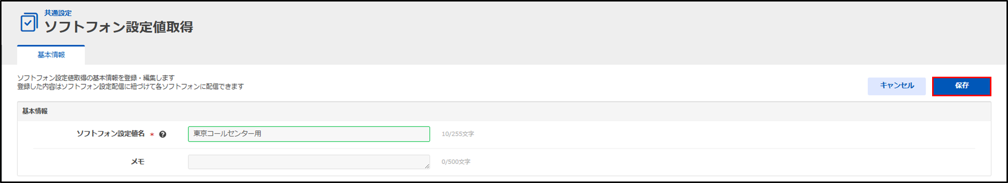 | ソフトフォン設定値名 | 255字以内でソフトフォン設定値の名称を設定します。 ※ここで設定した名称は、「ソフトフォン設定配信」メニュー「その他配信設定」タブの選択肢として表示されます。 |