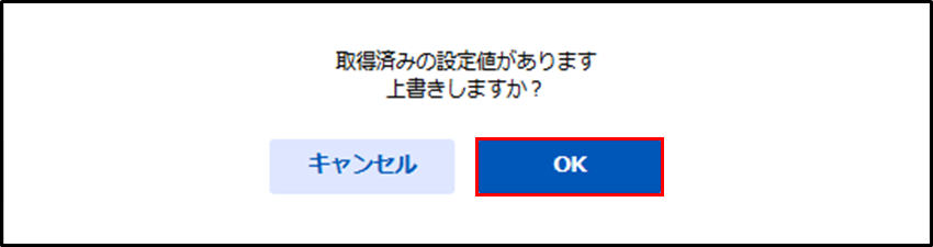手順8.(すでに設定値が登録されている場合のみ)「上書きしますか?」と表示されるので、「OK」をクリックします。