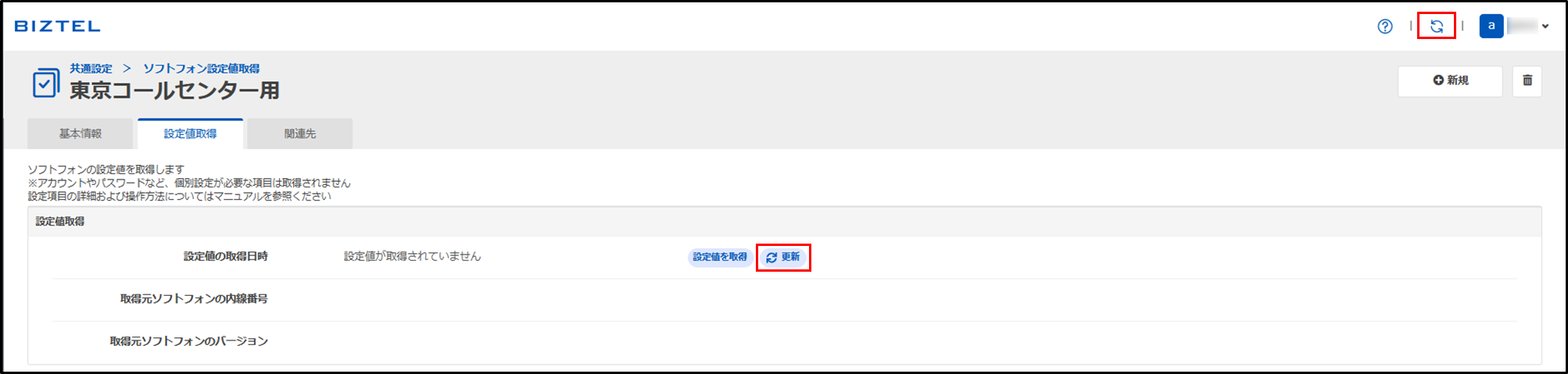 手順6に記載の該当項目がないかソフトフォンの状態を確認し、再度「設定値を取得」ボタンをクリックしてください。