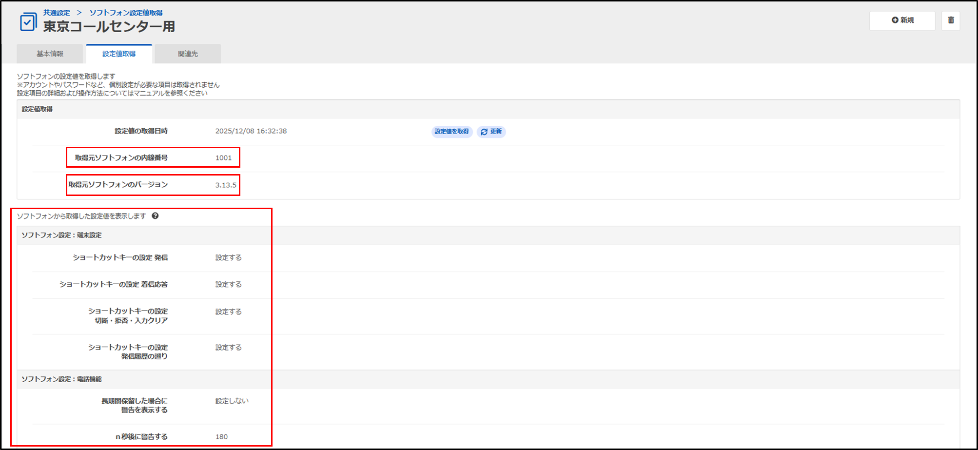・設定値の取得操作を行う管理画面と、取得元のソフトフォンのサーバは必ず同じものを利用してください。