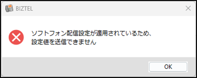 「ソフトフォン配信設定が適用されているため、設定値を送信できません」