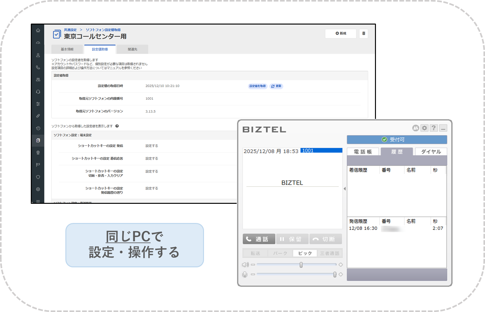 ・ソフトフォンから設定値を取得できるのは、BIZTELサーバのバージョンが「3.13.0」、かつソフトフォンのバージョンが「3.13.7」以上の場合です。