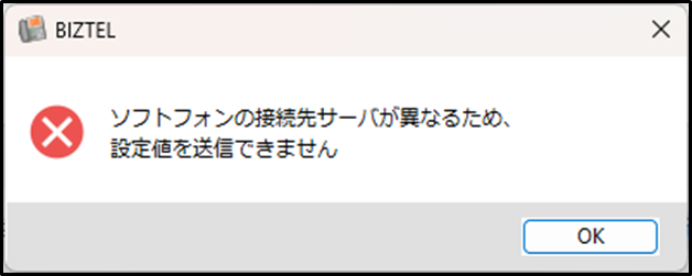ソフトフォンの接続先サーバが異なるため、設定値を送信できません