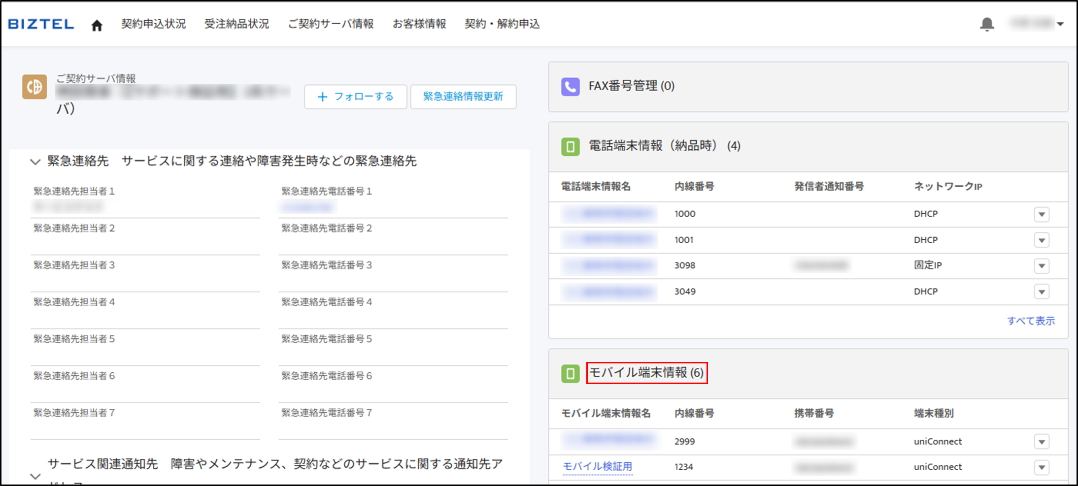 ポータルサイトへログイン後、「ご契約サーバ情報」より各項目を確認してください。