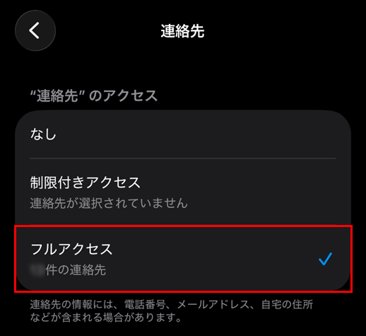 [フルアクセス] をタップします。