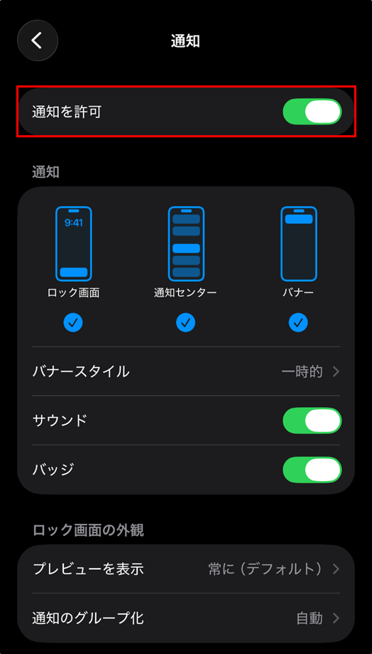 [通知を許可] を有効化します。