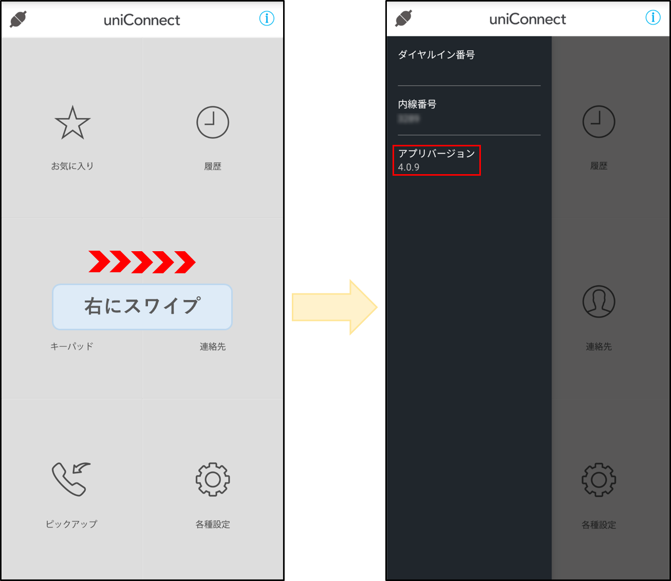 インストールされたuniConnectアプリのバージョンをお伝えください。 |