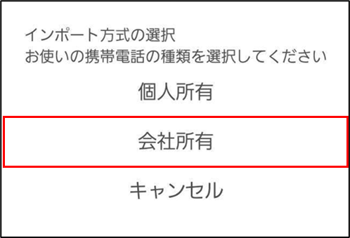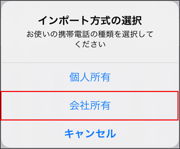 ・「インポート方式の選択」画面で、「会社所有」が選択されているか