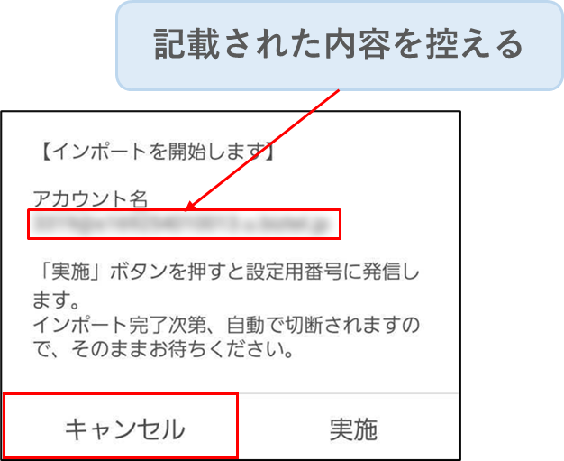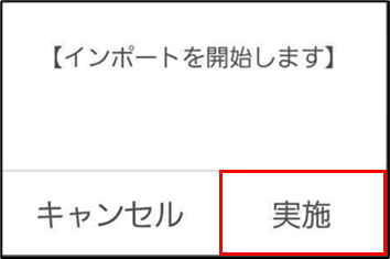 手順4.[【インポートを開始します】] とメッセージが表示されるので、[実施] をタップします。