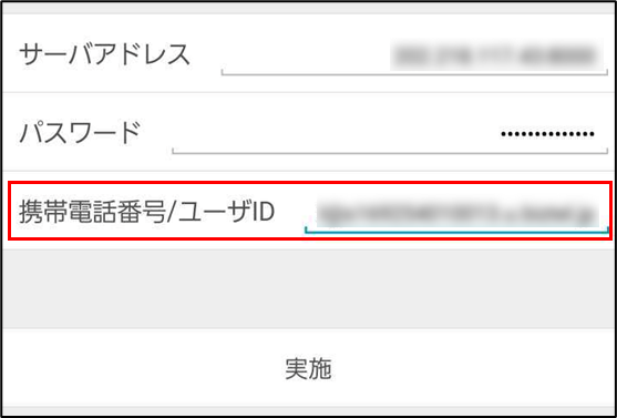 手順3.設定値の入力画面に遷移したら、手順3で控えた「内線番号@ホスト名」の値を [携帯電話番号/ユーザID] 欄に入力します。