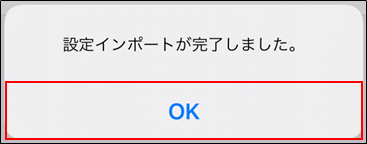 手順5.[設定インポートが完了しました] とメッセージが表示されたら、セットアップ完了です。