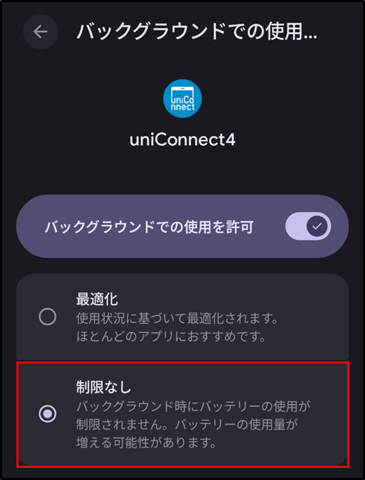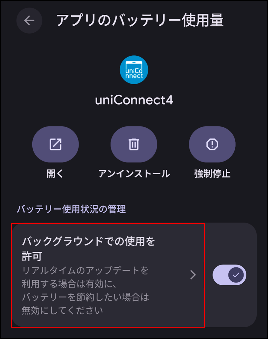 手順8.[バックグラウンドでの使用を許可] を有効化します。