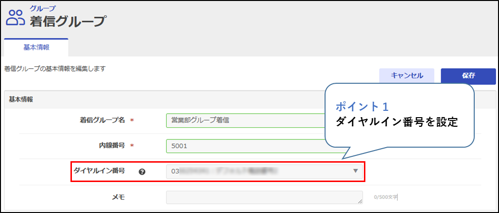 設定保存と同時に、その番号宛ての着信がグループに入り始めるため、必要な設定が全て完了したあとに設定することを推奨します。