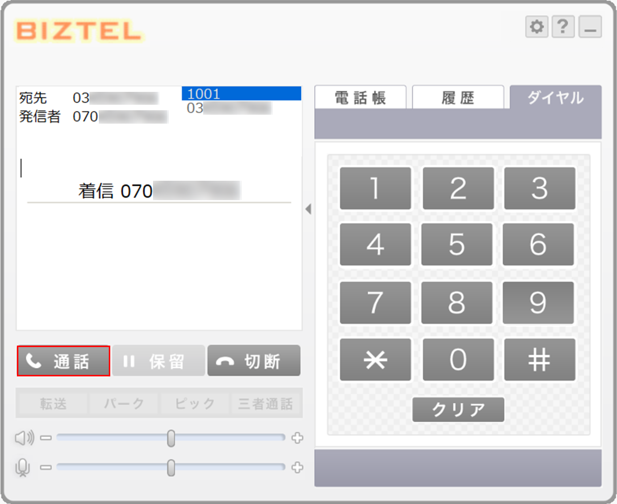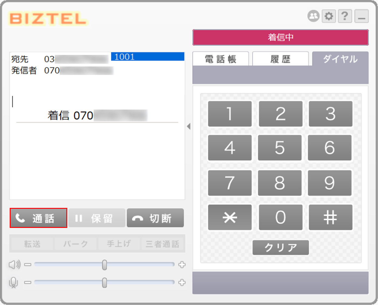 手順3.着信するため、「通話」ボタンをクリックし、通話を行います。