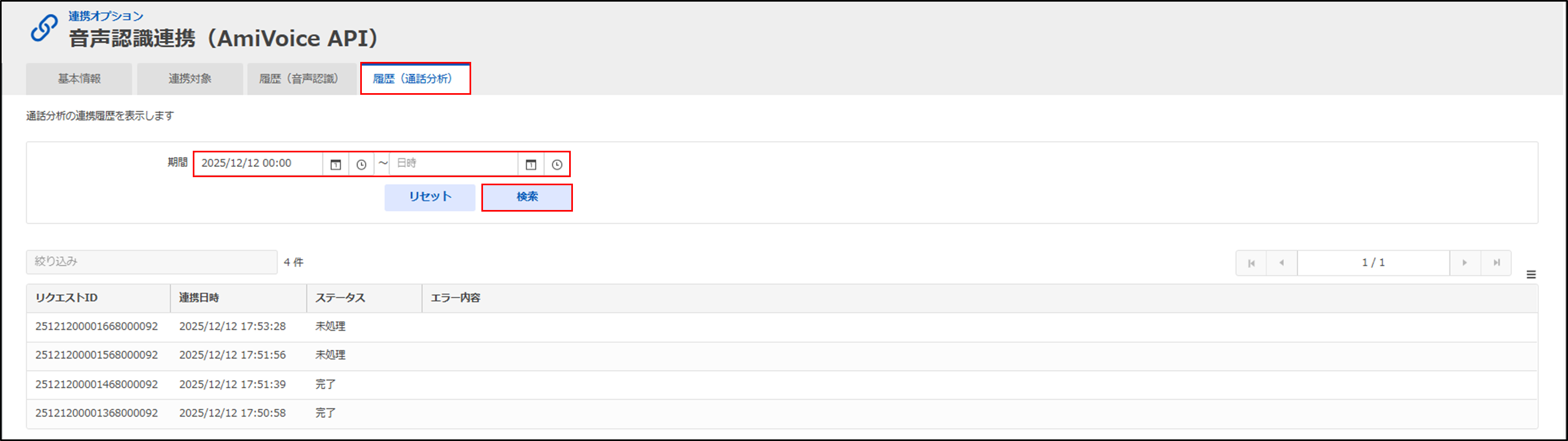 通話分析の処理結果が、以下4つのステータスで表示されます。 ・未処理 |