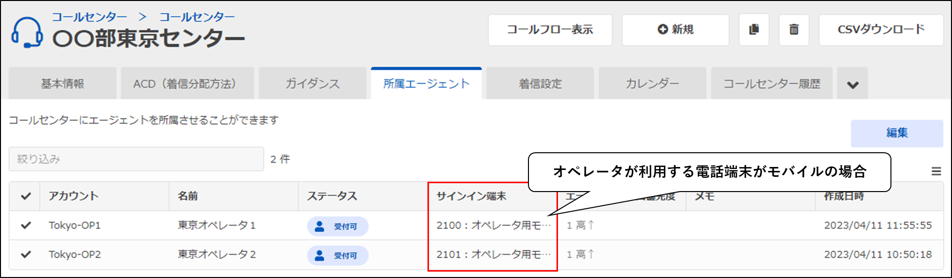 ※着信時の通知番号を"着信したコールセンターの内線番号"から"発信者の電話番号"へ表示変更することが可能です。