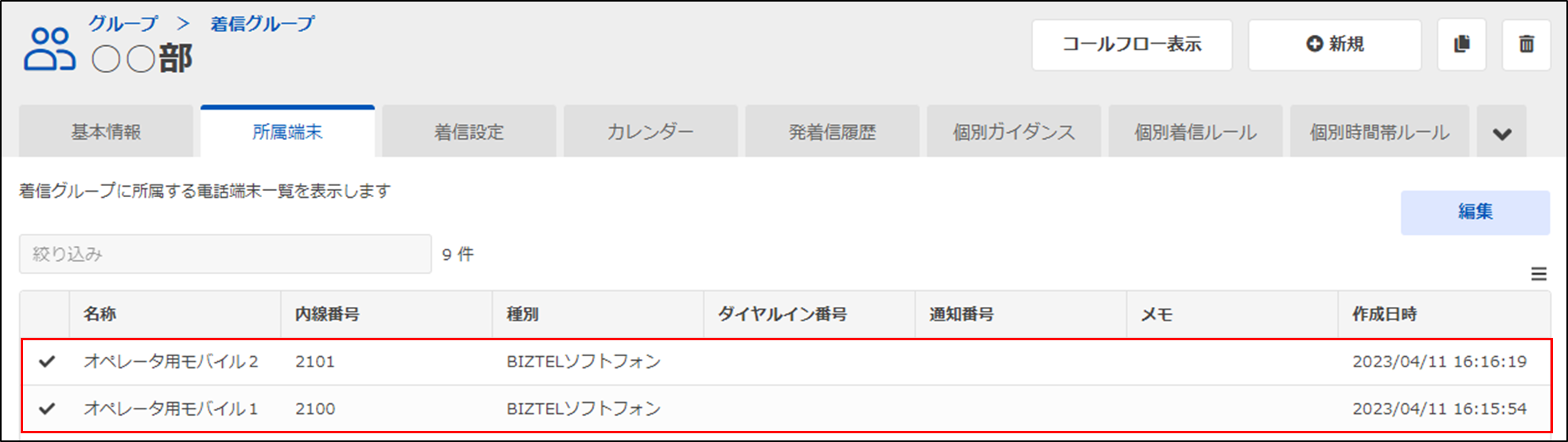 ※BIZTELの通話中に操作した場合、通話影響が発生する可能性がございます。