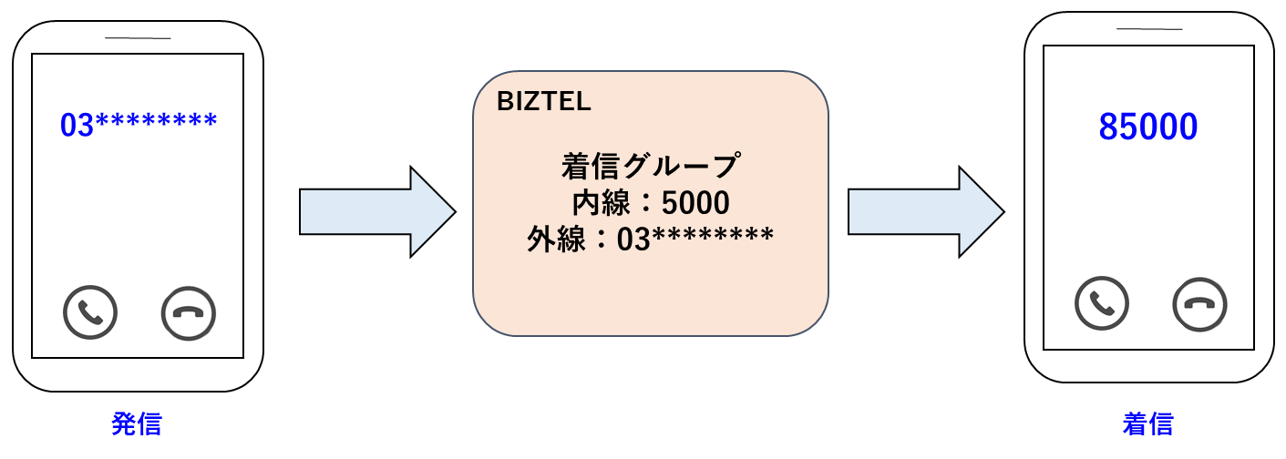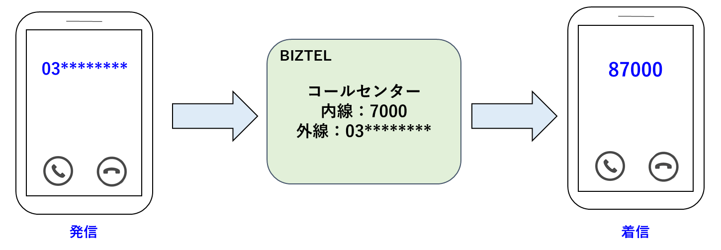 ※BIZTELを経由した着信時は、着信先(電話端末・着信グループ・IVR・コールセンター)問わず、、先頭に「 8 」が付いた状態で着信します。