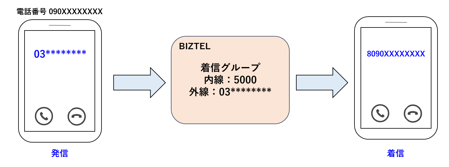 ※発信時に先頭に「8」を付けない場合、BIZTELを経由せず発信される為、発信者の携帯電話に紐づく電話番号が着信者に通知されますのでご注意ください。