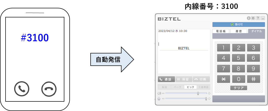 ・モバイル端末からBIZTELの内線1000番台への発信はできませんのでご注意ください。