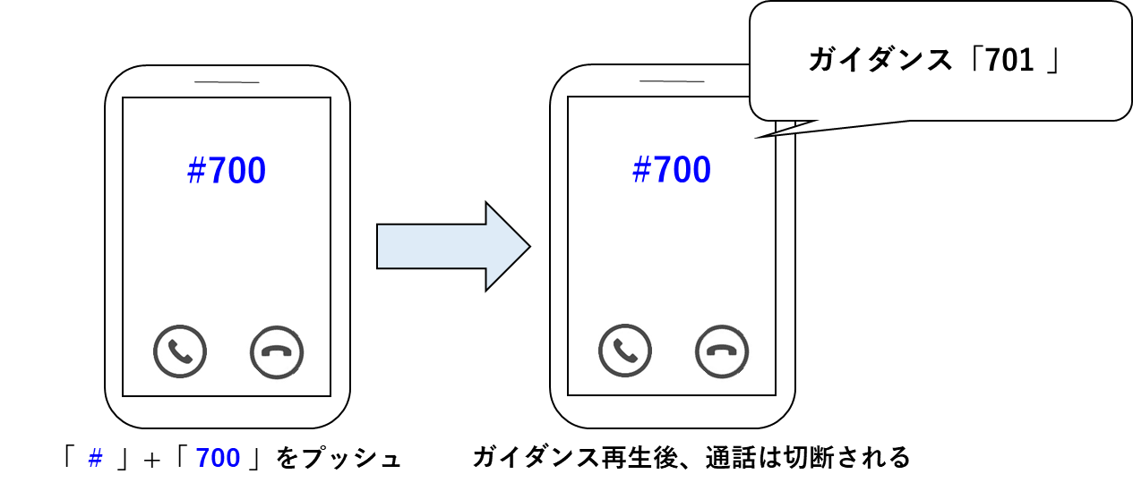 通話中に「#」+「 700 」をプッシュします。 ※「#」プッシュ後、「転送先の外線番号を入力してください」とガイダンスが再生されますが、そのまま「 700 」をプッシュします。 |