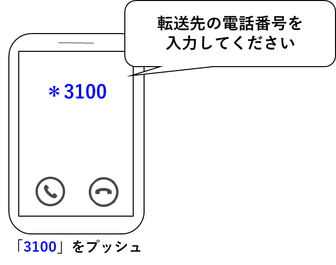 ※即時転送する場合、「*電話番号#」のように#を最後にプッシュすると待機時間を待たずに発信が可能です。