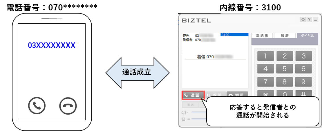 手順5.転送先が応答すると、発信者と転送先の通話が開始されます。