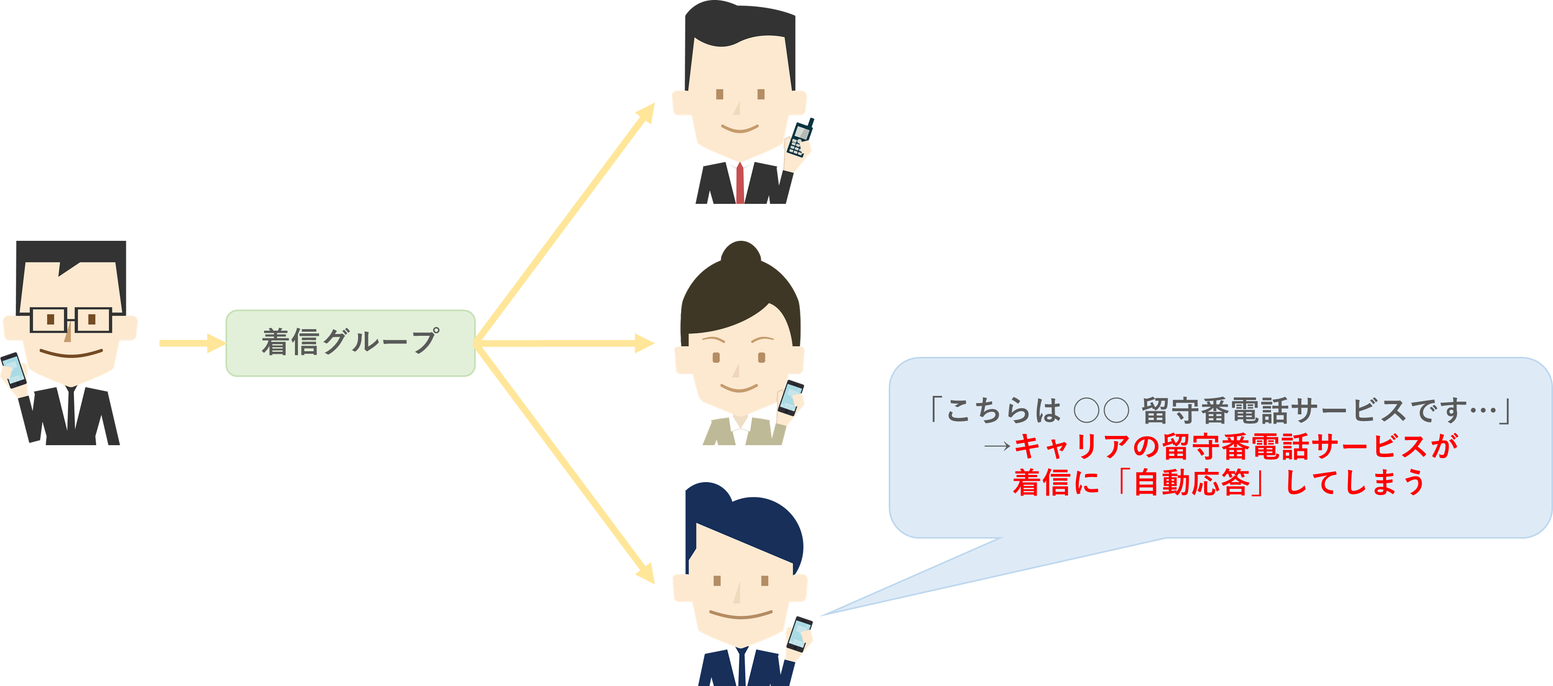 ・モバイル端末で留守番電話サービスが有効になっている場合、着信時に留守番電話サービスが起動してしまう為、