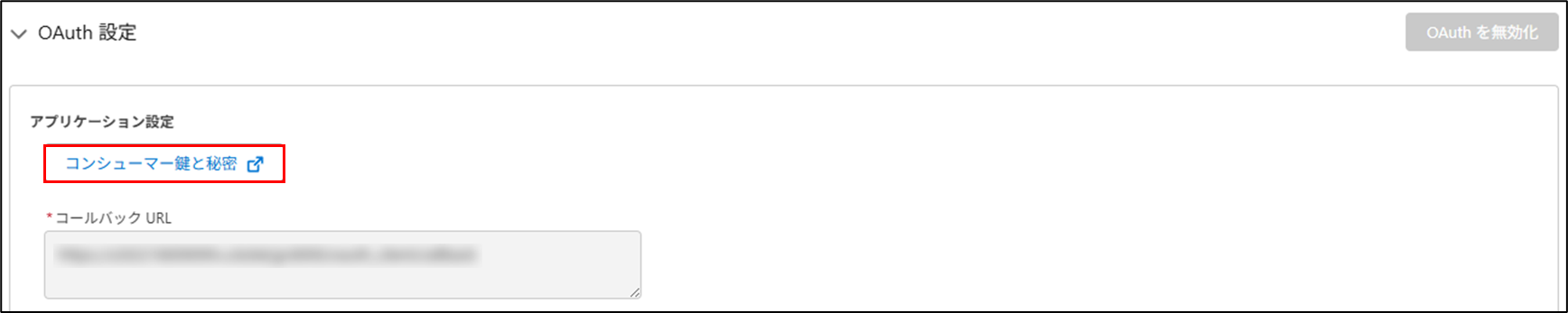 手順5.OAuth設定内にある「コンシューマー鍵と秘密」をクリックします。