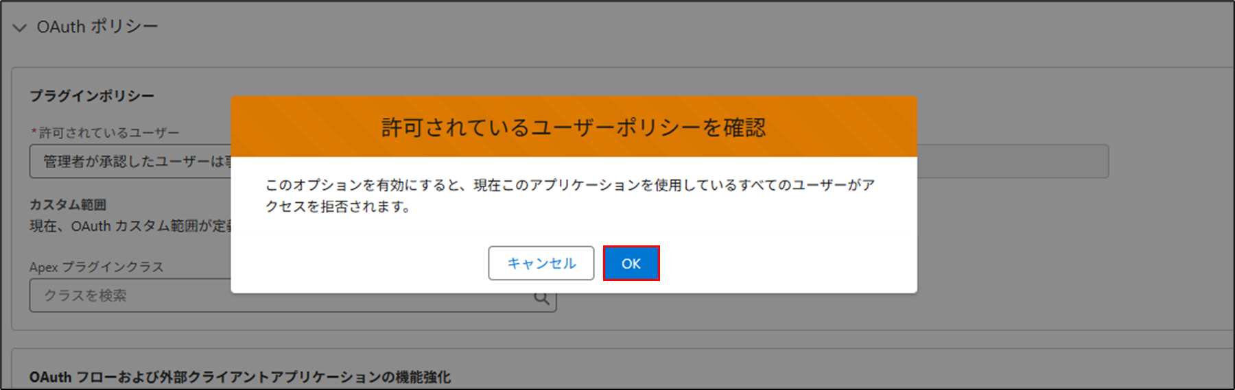 手順8.OAuthポリシーを展開し、「許可されているユーザー」を「管理者が承認したユーザは事前承認済み」に変更します。