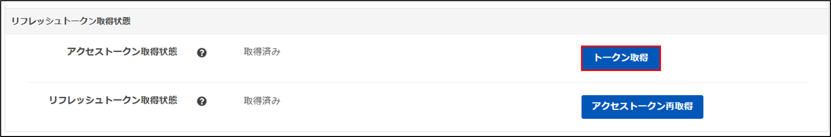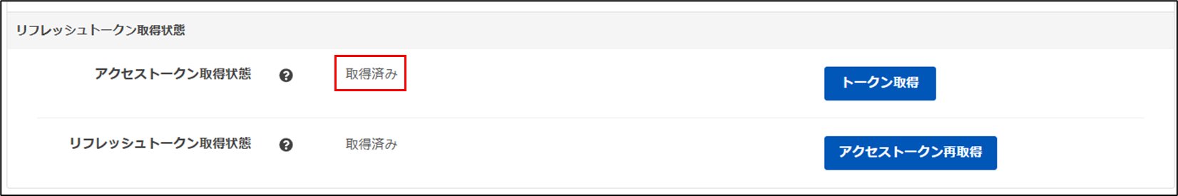 ※アクセストークン取得情報が「取得済み」になることを確認ください。