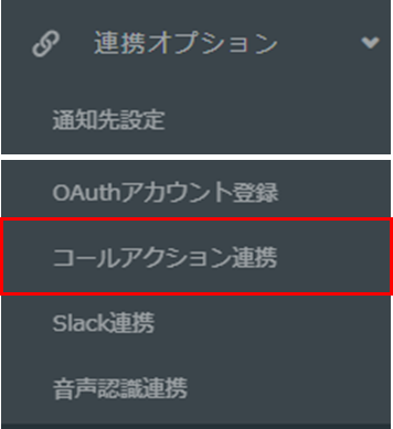 手順1.「連携オプション」>「コールアクション連携」をクリック。