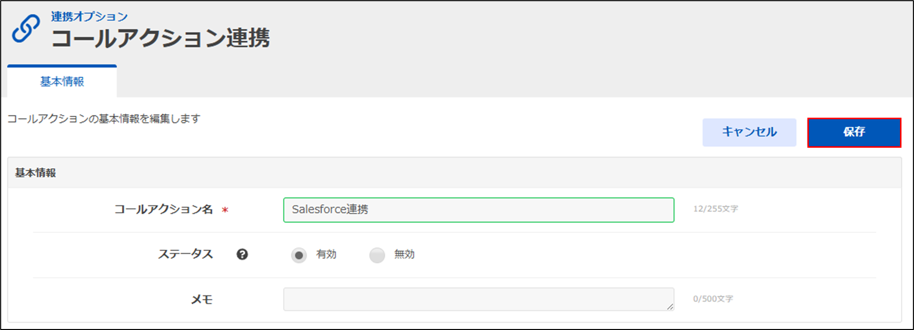 手順3.「コールアクション名」を入力し、保存。