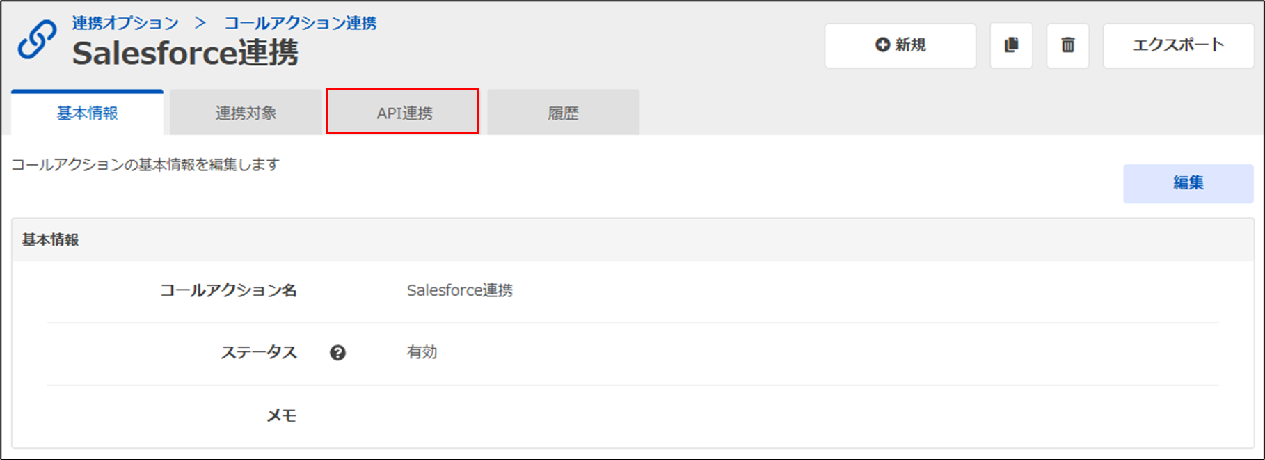 手順1.作成したコールアクションの「API連携」をクリック。