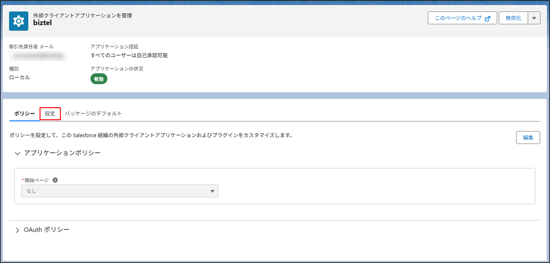 Salesforce上で、BIZTELと連携するためのOAuth認証の設定を行います。