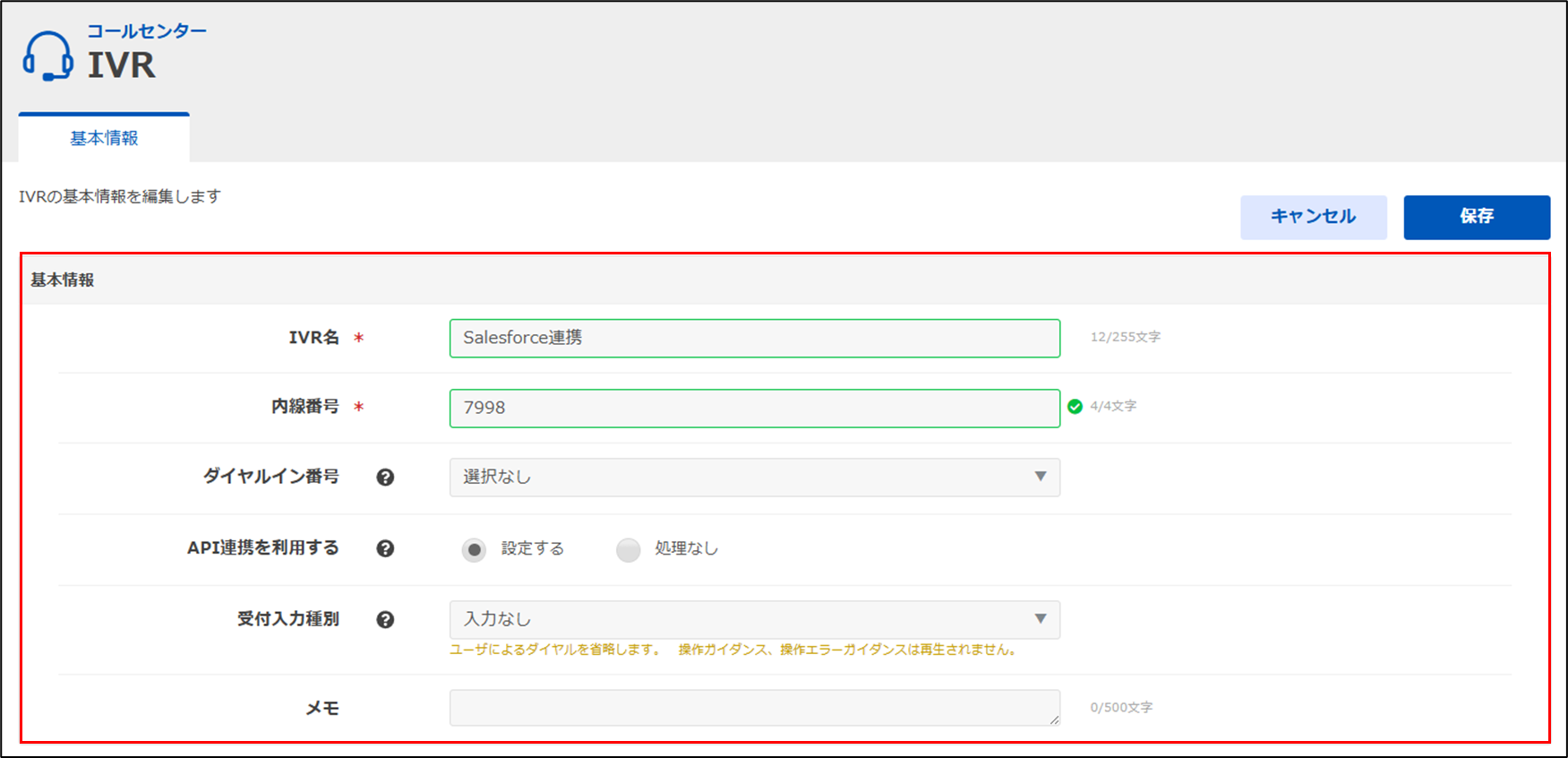 | IVR名 | 任意の内容を入力します。 |
