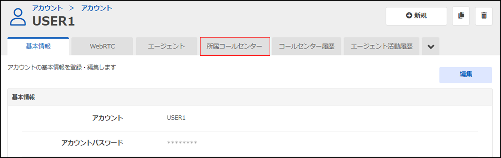 手順3.上部のタブから「所属コールセンター」をクリックします。